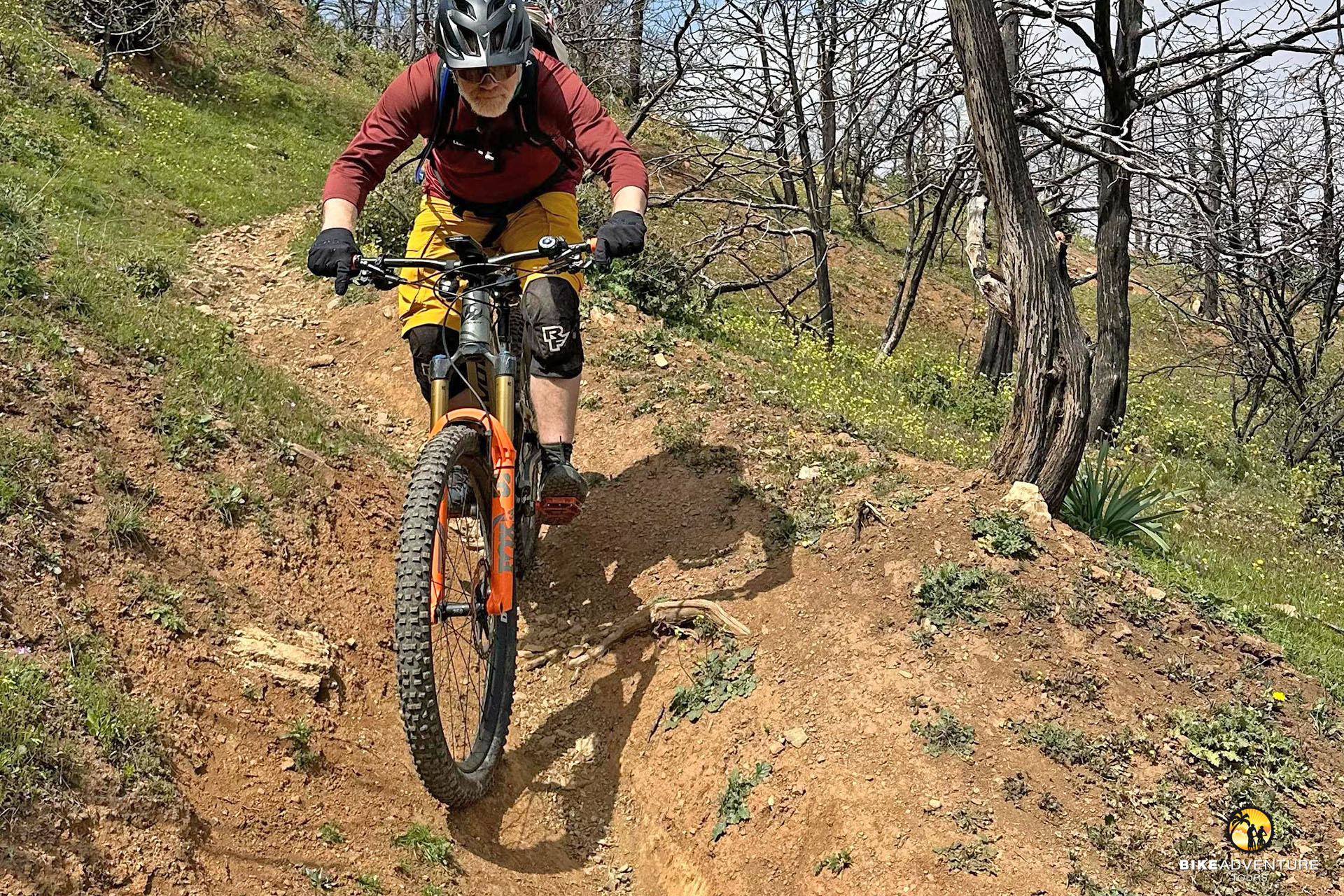 Am ersten Tag shutteln wir zweimal in die Berge. Wir entladen die Bikes und machen uns für den ersten Downhill auf der Blackline bereit. Am Start sind: Hishram, unser marrokanischer Bikeguide, Roger Winiger (alias Roscher oder José) unser Top-Guide von BAT, Philip Douglas (alias Negroni) der Second-Guide, der sich sowohl auf den Trails als auch bei der Buchhaltung der Trinkgelder-Gruppenkasse mit Pivot-Tabellen herumschlägt. Ändu (natürlich wie es sich für einen echten Berner gehört auf einem Thömus), Hampi (alias Specialized-Agent), der sich mit Negroni Wortgefechte und Säuliämter-Klatsch (Bonstetten versus Maschwanden) leistet, Denise und Hansruedi mit den gemieteten E-Bikes (so unheimlich «Schweri-Dinger») sowie Andi der Oberösterreicher und natürlich Last but not least pfiil auf seinem nigelnagelneuen Koba Trailtool. Wow, ist das ein geiles Bike. Und eine super Truppe für ein Bike-Abenteuer.